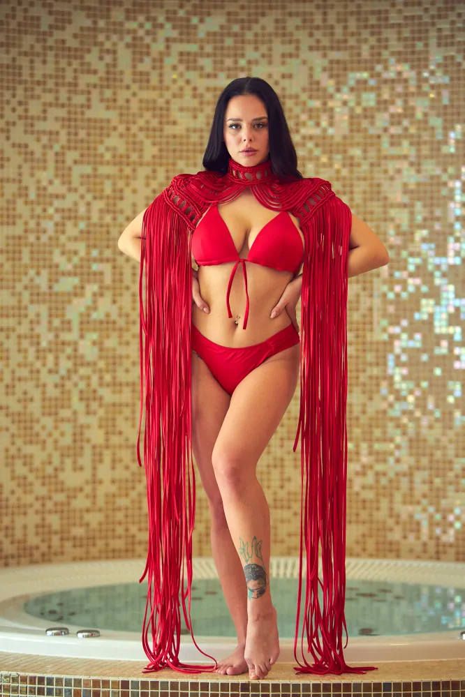 Mohutný doplnok na krk a plecia zhotovený s technikou macramé neprehliadnuteľne zvýrazní Váš outfit pri každých špeciálnych udalostiach. Tento výrazný šperk je dokonalou voľbou pre ženy, ktoré chcú upútať pozornosť jedinečným módnym prvkom.