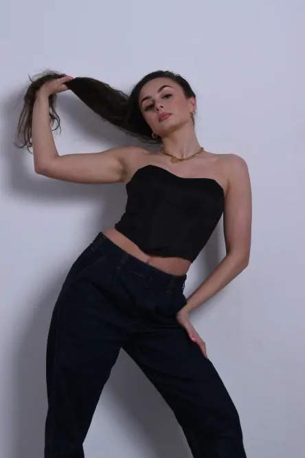 Mladistvý a jemný krátky korzet, ktorý vás bude sprevádzať pri každej príležitosti. Kombinácia štýlu, pohodlia a praktickosti pre modernú ženu.
