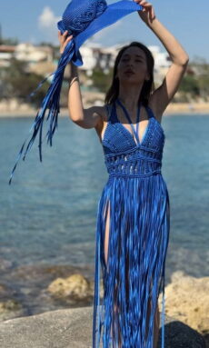 - unikátna aplikácia macramé zdobí líniu dekoltu